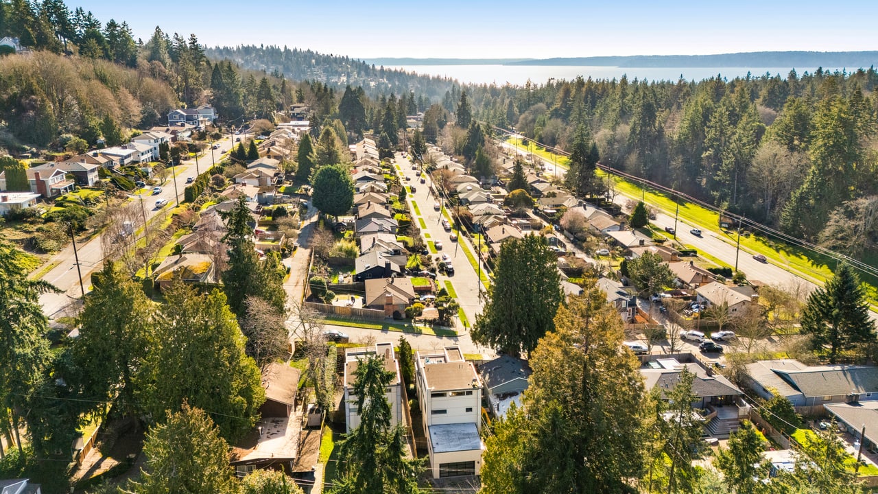 A quiet hilltop West Seattle neighborhood with sweeping sound views, classic homes, and...