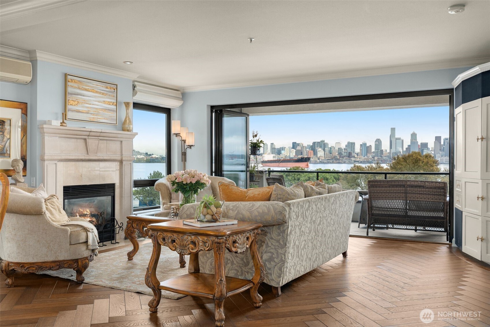 Exceptional city, mountain & Puget Sound views from this spacious, elegant condominium. Sought after, boutique building with only 10 units, located on the fabulous Alki Beach. Steps away from the water taxi, restaurants & 7.5 mile paved trail for exercise or enjoying the view! This end unit is gorgeous!! Beautiful oak Hardwood flooring throughout the unit. NanaWall opens to the private, covered balcony & provides an indoor / outdoor living connection. Open floor plan with formal dining space, well equipped updated kitchen & two outdoor patios. Generously sized rooms, including a lovely primary suite, second bedroom & bonus room. Well maintained building with strong HOA & reasonable dues. Two secure garage parking spaces & two separate storage spaces. A special unit, very welcoming & hard to come by. Welcome to life on the beach!! You are going to love it!