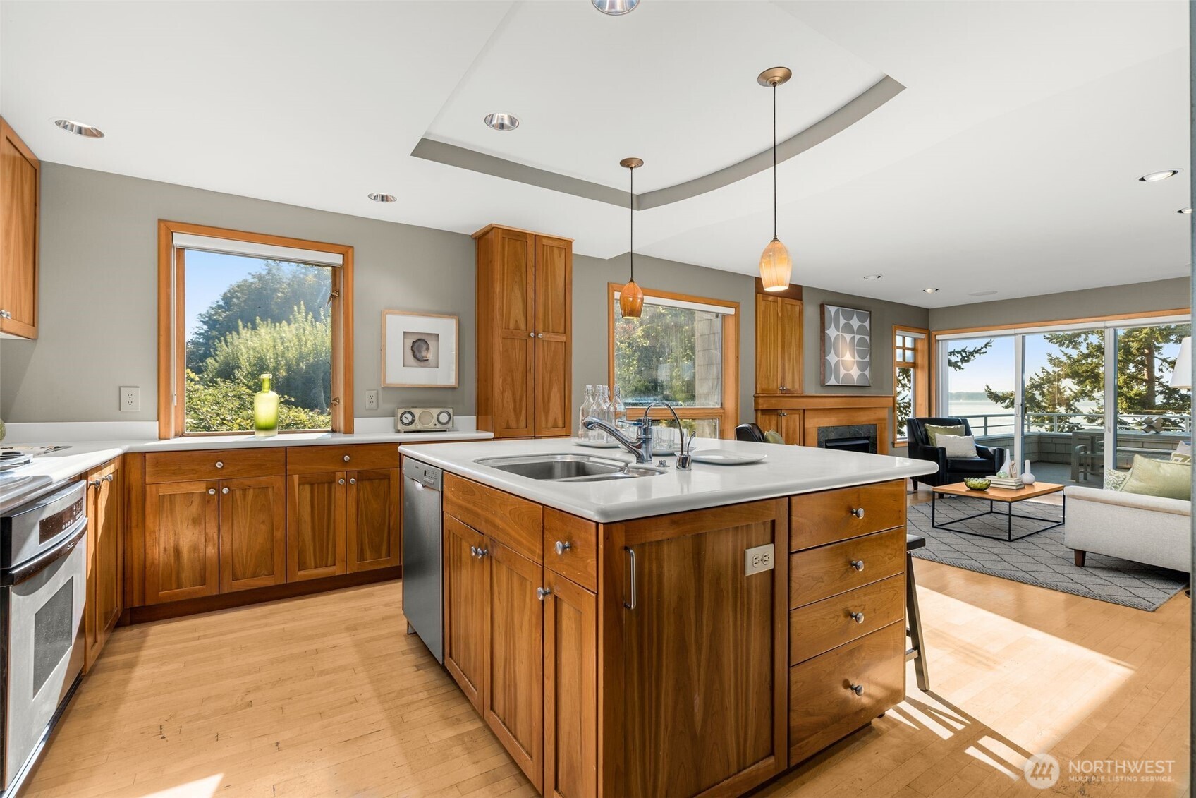 Privacy perched in the Alki hills, this exceptional view home is the one you have been waiting on! Sweeping, unobstructed Puget Sound & Olympic Mountain views from every level!! You will love living a short distance away from the renowned Alki beach! Restaurants, trendy bars, coffee shops & the sandy beach just minutes away! The home highlights a sprawling open floor plan offering high ceilings & generous sized rooms throughout. Coveted NW contemporary design with hardwood floor & 3 gas fireplaces. Expansive views from every level with multiple outdoor decks, perfect for the entertainer! Private quiet street, however close to it all! Two car attached garage & abundant storages space for all your beach toys! The beach is calling!!!