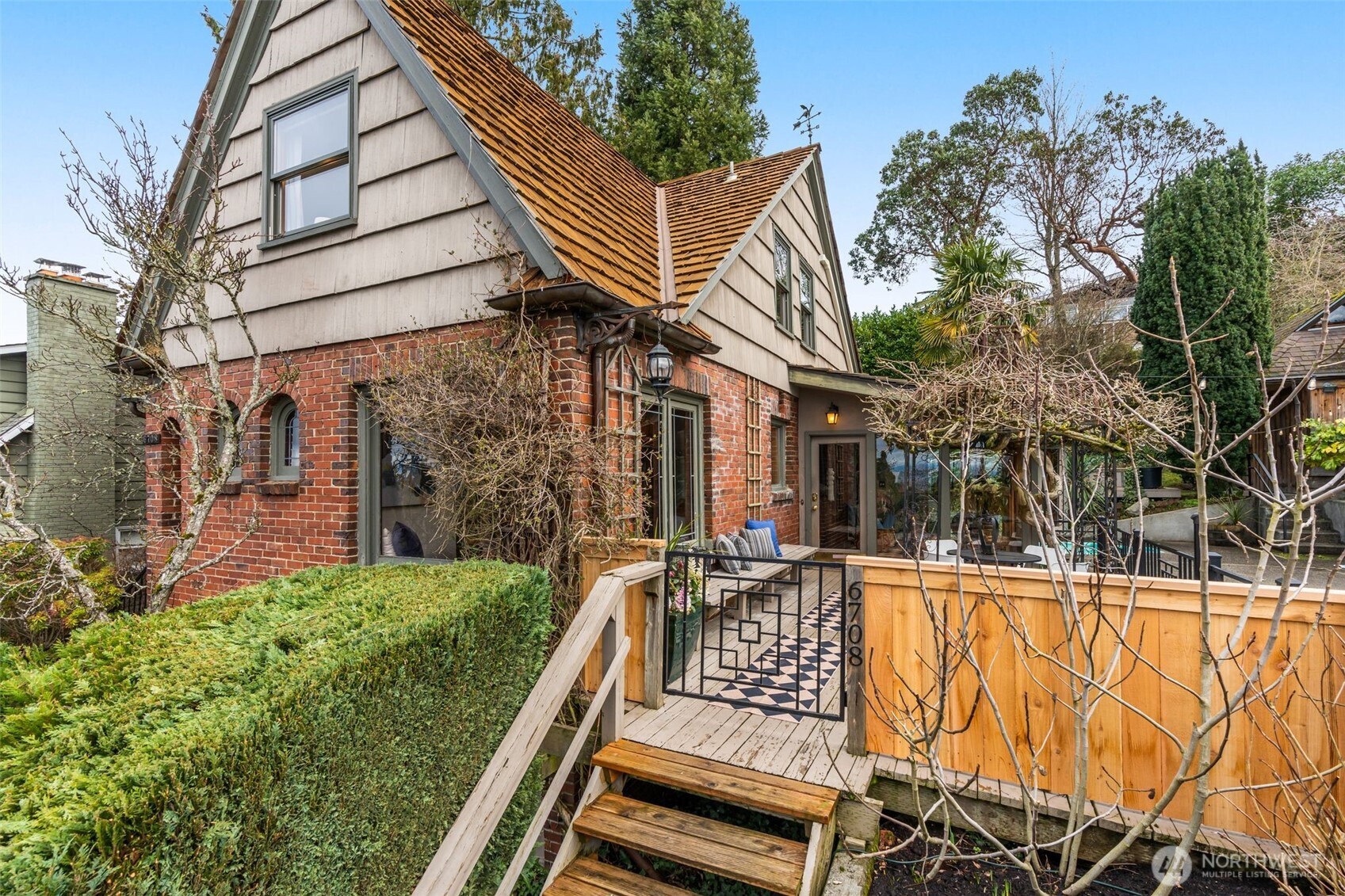 Welcome to 6708 39th Ave SW, a picturesque 1931 Tudor positioned on an oversized west facing view lot. House sits far off the street, on one of few blocks in West Seattle with buried power lines, providing a wireless view. The exceptional Sound & Mountain view encompasses the entertainment space with built in ground swimming pool & hot tub. The pool is heated and provides a fun amenity all year round. The house showcases all the original charm with modern updates. A beautiful blend of hardwood floors, arched doorways, mahogany trim with all a completely remodeled kitchen & updated bathrooms on every level. The Primary bedroom features soaring vaulted ceilings & Juliet balcony with a superb Puget Sound view! Other updates include air conditioning & a charming built-in seating bench with storage. The coveted oversize lot feels like a private park, nestled in the sought after Gatewood neighborhood, equipped with your own private greenhouse! There is a one car garage, a gorgeous sun room & plenty of storage throughout the home. Truly a rare opportunity, Welcome home!
